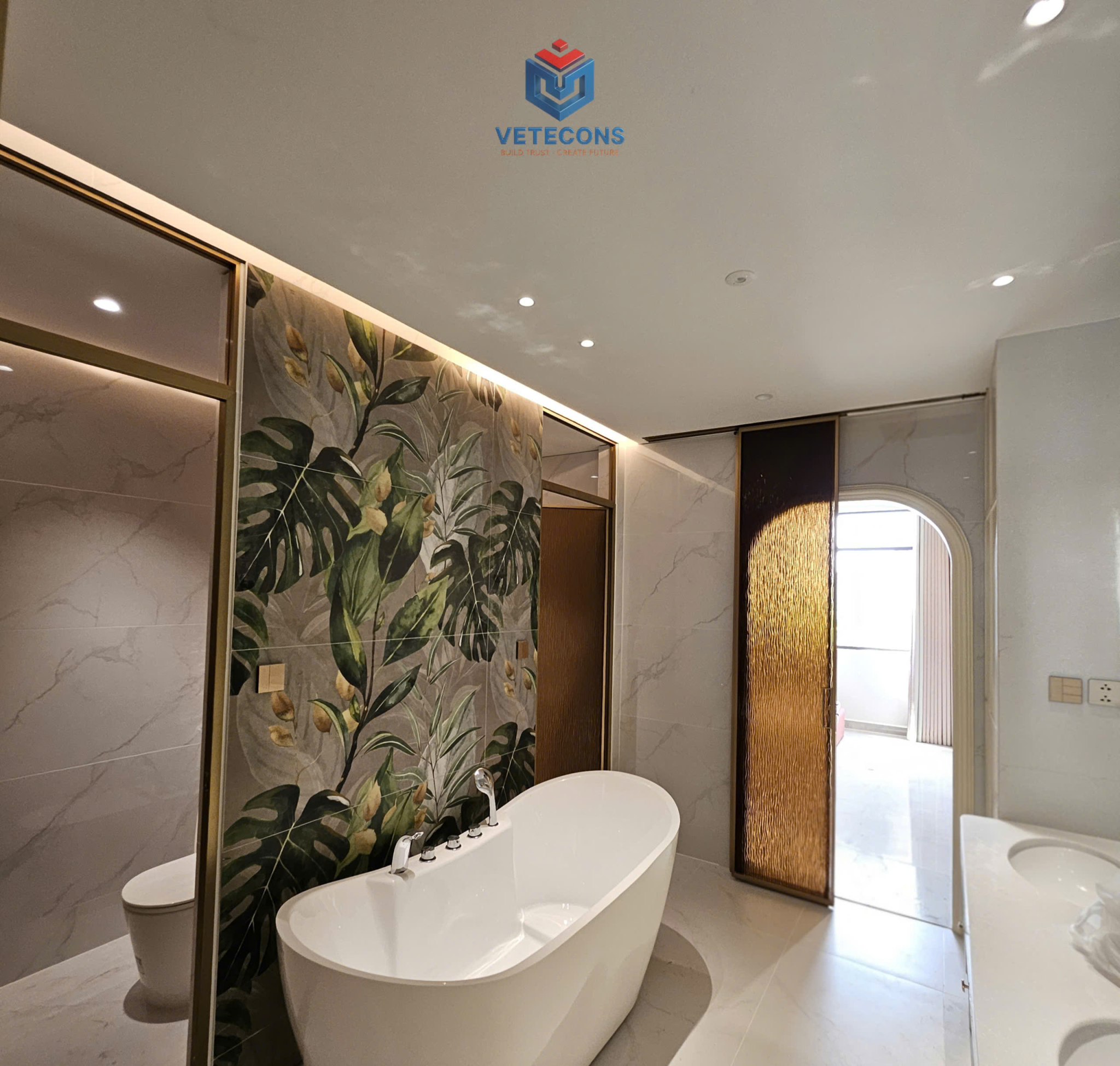 Giai đoạn thi công phần thô cải tạo được triển khai cẩn trọng: điều chỉnh vách ngăn, gia cố những vị trí cần thiết, xử lý chống thấm – chống nứt triệt để cho các khu vực ẩm như WC, ban công, sân thượng. Song song đó là việc đi lại toàn bộ hệ thống điện nước âm tường, đảm bảo an toàn, thẩm mỹ và dễ bảo trì về sau.